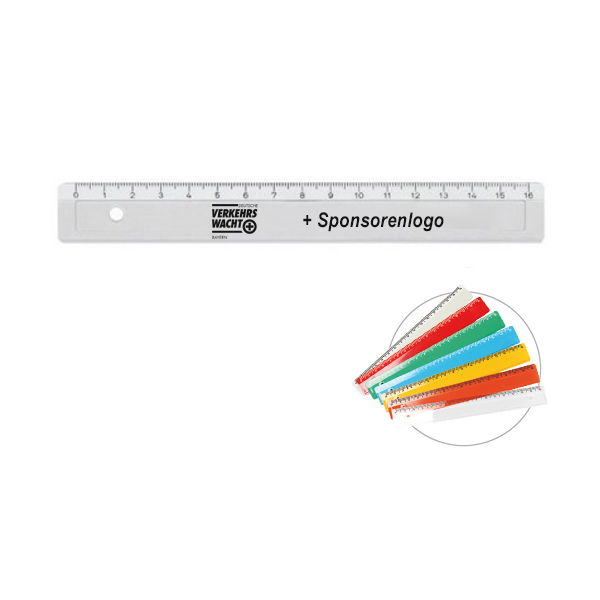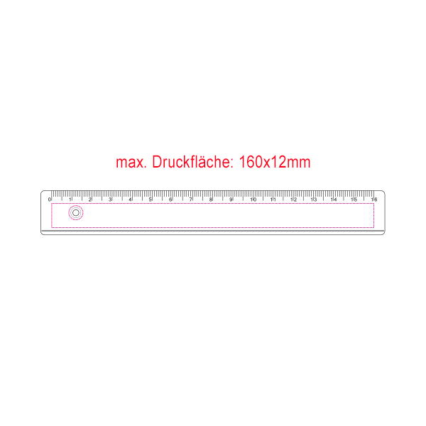 Lineal mit gedruckter Skala auf schräg abfallender Fläche und Tuschkante.
