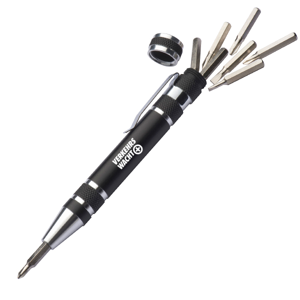 Metallschraubendreherset mit acht verschiedenen Bits.