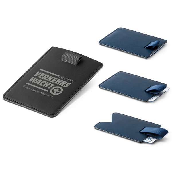 Kartenetui aus PU mit RFID-Schutz. Dieser hat eine Kapazität bis zu 2 Kreditkarten und ein Polyesterband, welches die Nutzung vereinfacht.