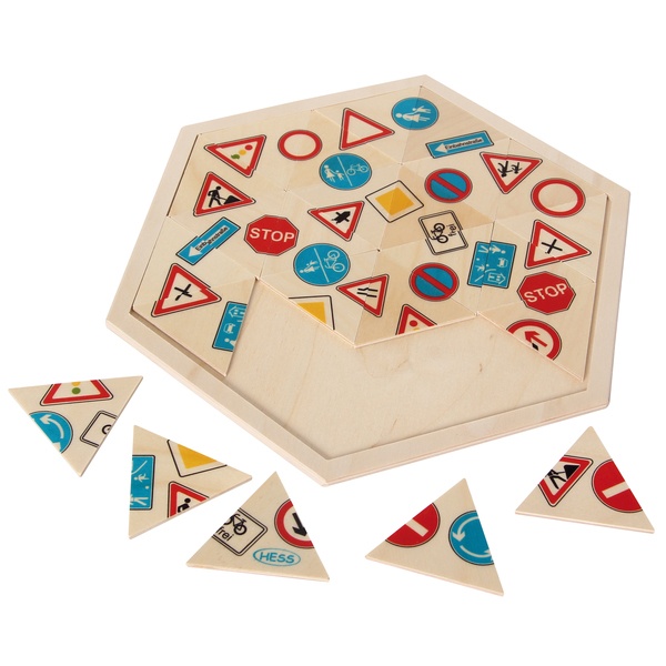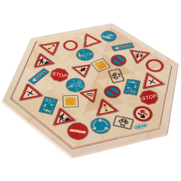 Die intensive Beschäftigung mit den Motiven beim Puzzeln fördert die Einprägung der Verkehrszeichen besonders positiv.